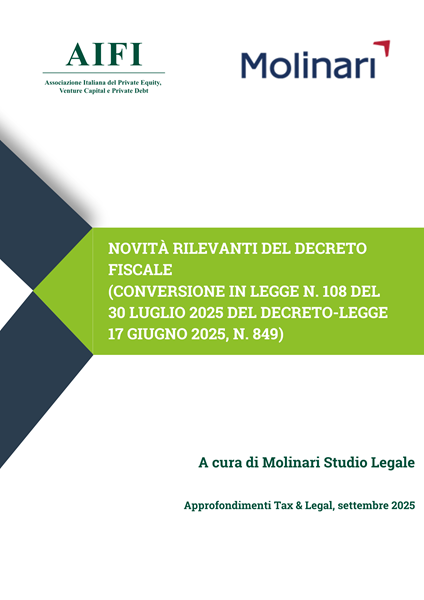 È possibile consultare la normativa fiscale nazionale di riferimento per gli operatori di private equity, venture capital e private debt. Oltre ai provvedimenti e alle circolari interpretative dell’autorità fiscale nazionale, sono riportati approfondimenti e note di commento su temi di attualità, a cura dei professionisti della Commissione Tax & Legal AIFI.