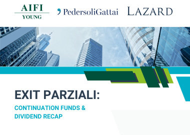L’8 maggio 2025 si è tenuto l’evento “Exit Parziali: Continuation Funds & Dividend Recap” organizzato in collaborazione con PedersoliGattai e Lazard presso la sede di PedersoliGattai di Milano.