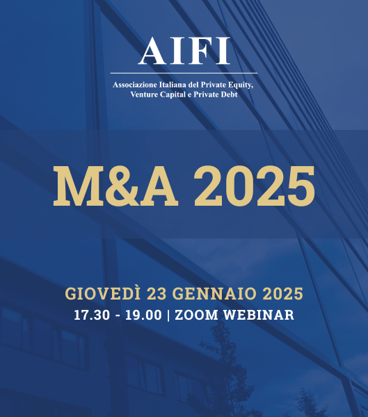 Il 23 gennaio 2025, dalle 17.30 alle 19.00, si terrà su Zoom il Webinar promosso dalla Commissione M&A di AIFI sul tema: M&A 2025. L’incontro sarà il momento per analizzare i dati di chiusura del mercato nel 2024 e le aspettative degli operatori per i prossimi mesi. La conferenza vedrà confrontarsi diversi speaker durante tre tavole rotonde.