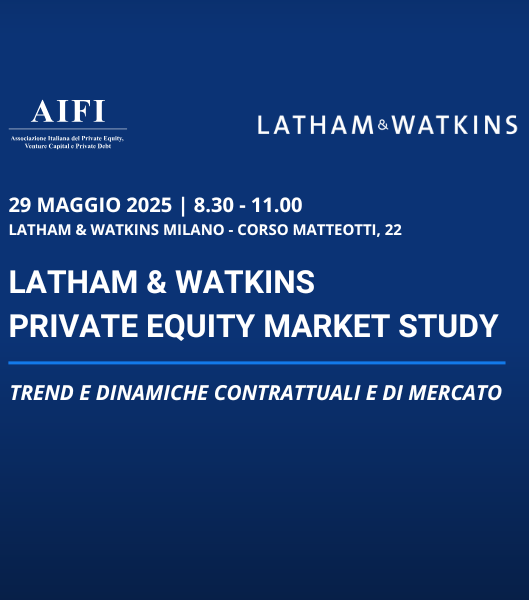 Il 29 maggio si è tenuto il breakfast meeting AIFI “Private Equity Market Study - Trend e dinamiche contrattuali e di mercato”, realizzato in collaborazione con Latham & Watkins, c/o Latham & Watkins – Corso Matteotti 22, Milano.