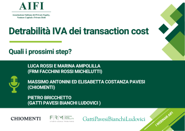 Il 16 ottobre 2024 si è tenuto il webinar AIFI "Detrabilità IVA dei transaction cost: Quali i prossimi step?".